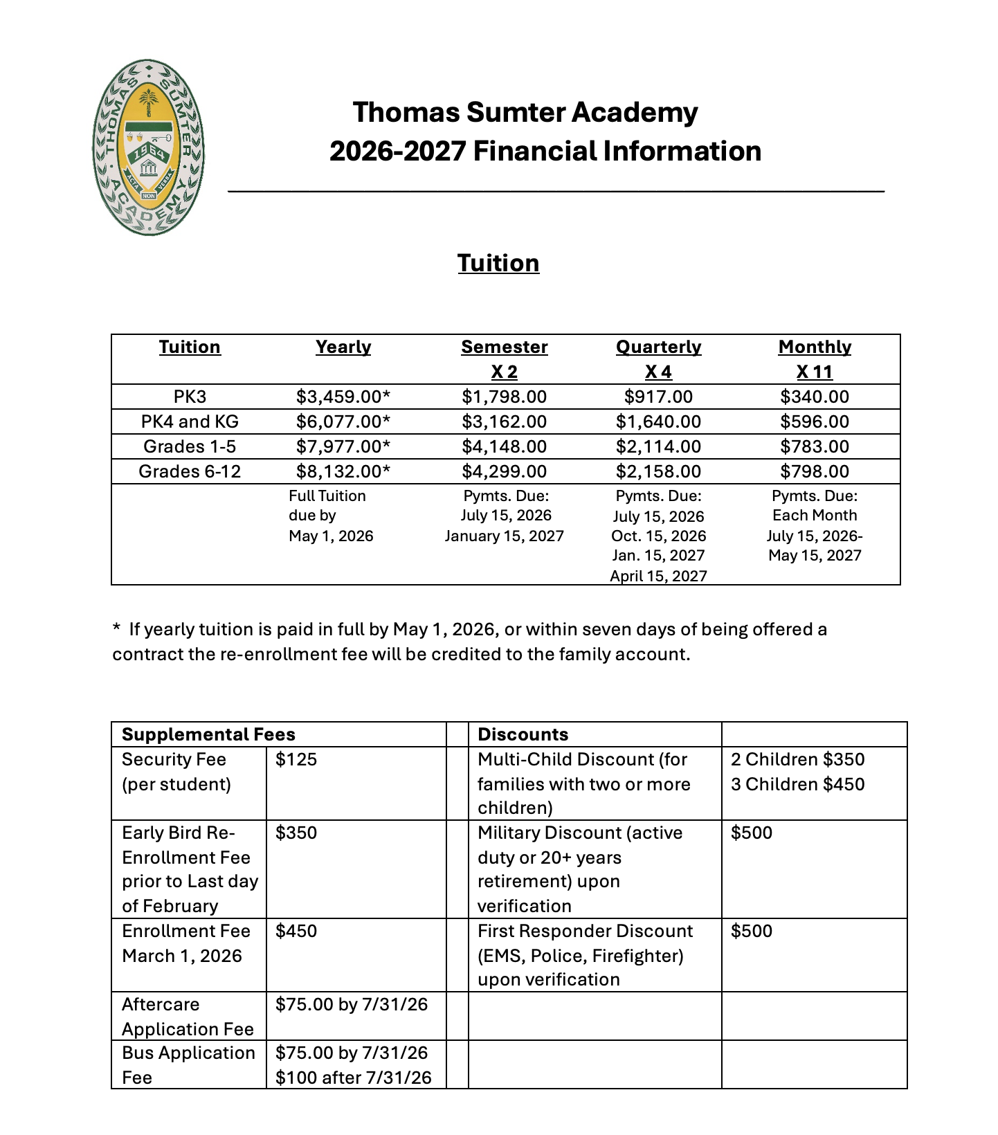 Please contact our Admissions Office with any related questions at 803-499-3378 or via email at dixie.hardy@thomassumter.org